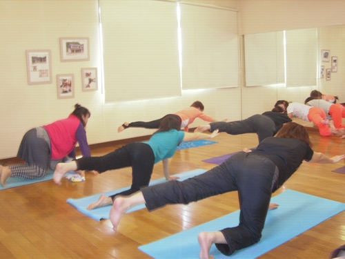 いつも満員に近いので、ヨガマットをぎりぎりに敷いてやっています。