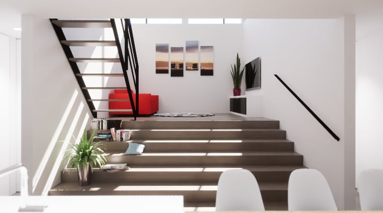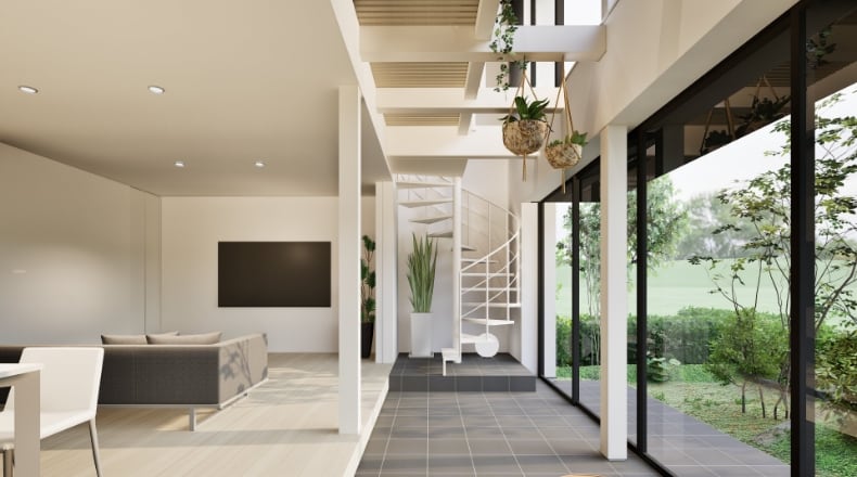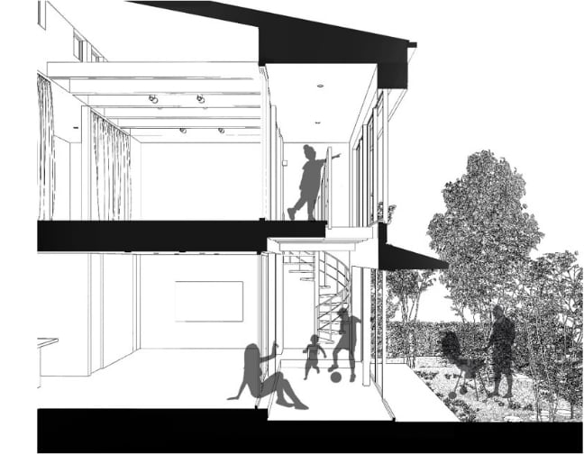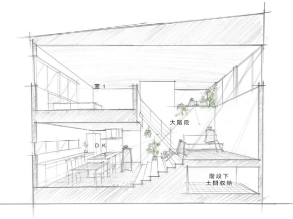 そんな土間縁に玄関や螺旋階段を取り込み、