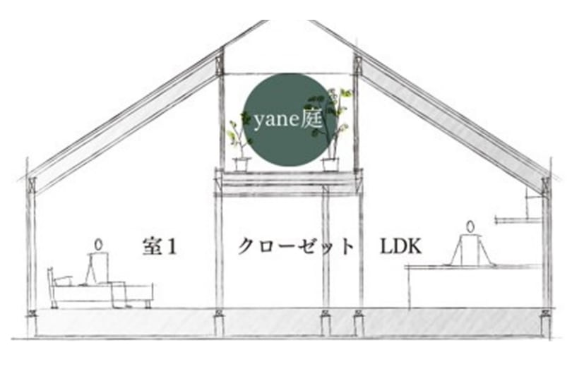 見上げれば、そのyane庭で遊ぶ子どもたちの姿が。