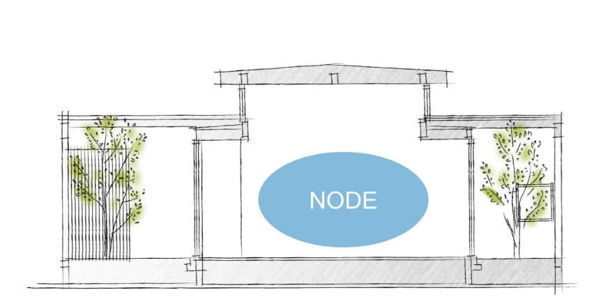 「NODE」と名付け、暮らしの中心にレイアウト。