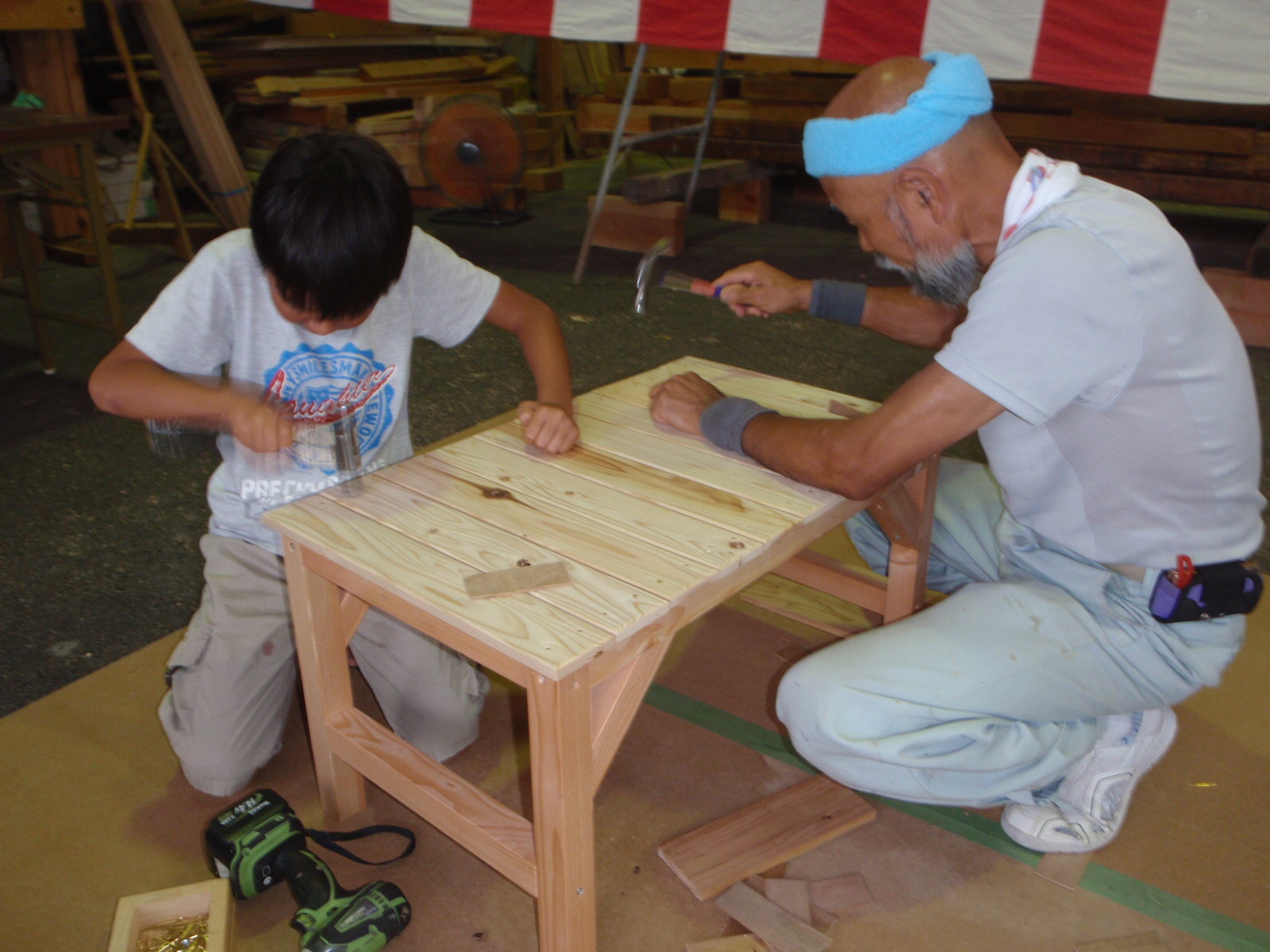 大工さんたちが手伝いながら、みんなで力を合わせて作りました!