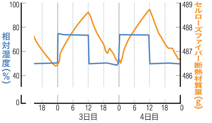 セルローズファイバーには木質繊維特有の吸放湿性があり、
