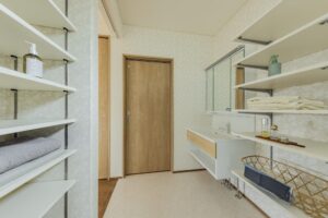 個人的には、脱衣所に可動棚がたくさんあり、タオルや洗剤を収納しておけるのが便利でいいなあと思います。
