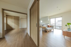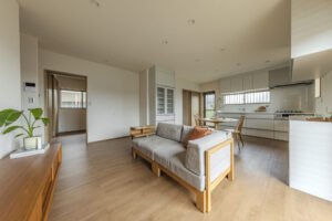 人気の高まっている平屋で、夫婦2人で暮らしていくために必要なお部屋のみに限り、将来のことも考えなるべく段差のない造りになっています。