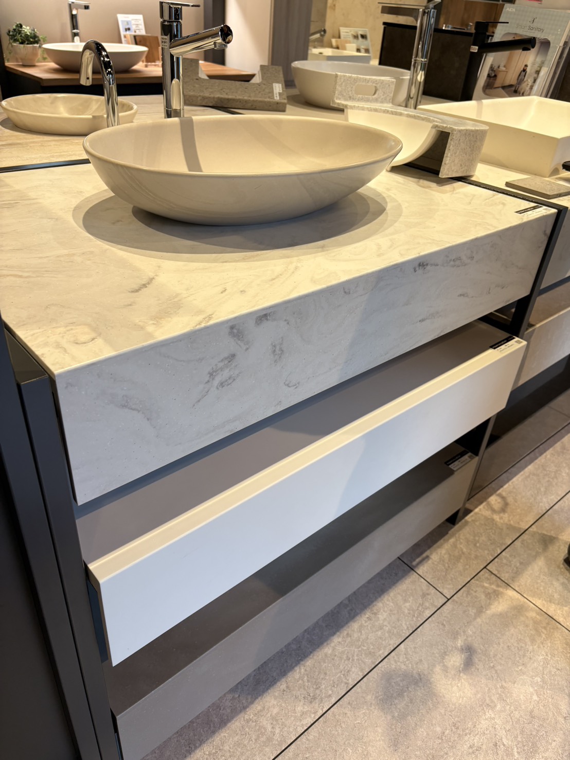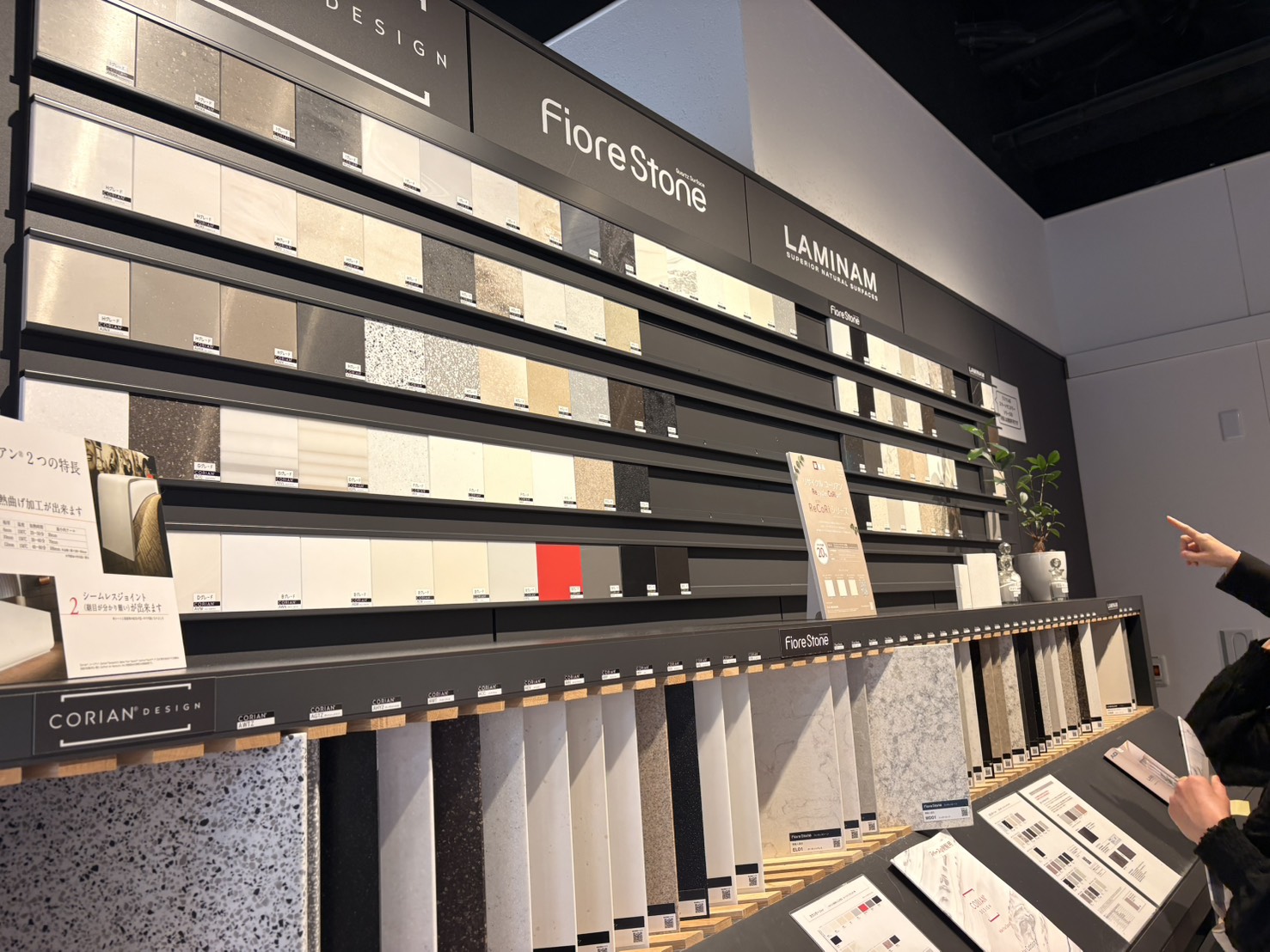 現在、大規模リノベーション中のU様とご一緒に、洗面カウンターの素材選びです。